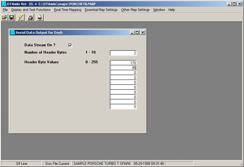 The DTA E48 & P8 PRO ECUs output a 34 byte sequence of data at 9600 baud.