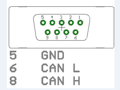Hardware is high speed CAN (PCA82C250T is used). CANH is on pin 8, CANL is on pin 6, GND is on pin 5 in 9pin data connector. There is terminal resistor 180 Ohm between CANH and CANL.