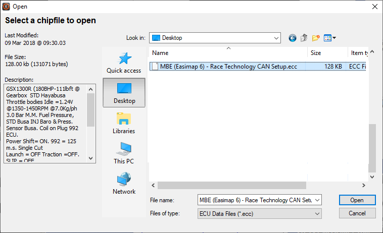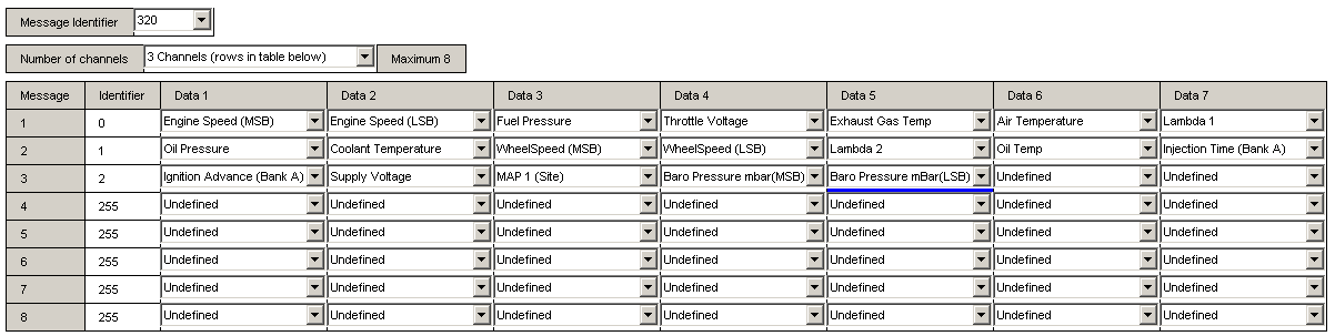 Open the CAN file Race Technology supply - MBE (Easimap 6) - Race Technology CAN Setup.ecc: