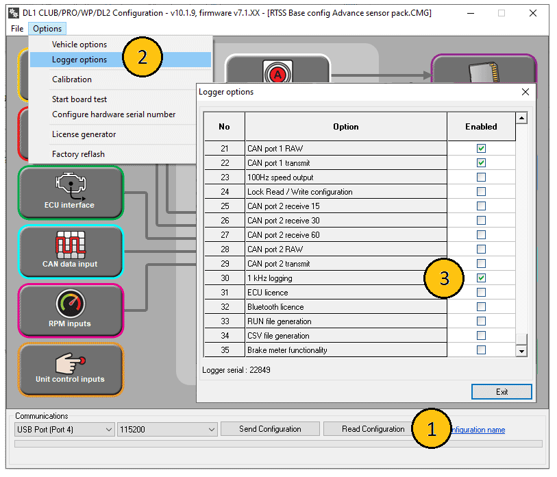 - Check unit is licensed for 1khz logging