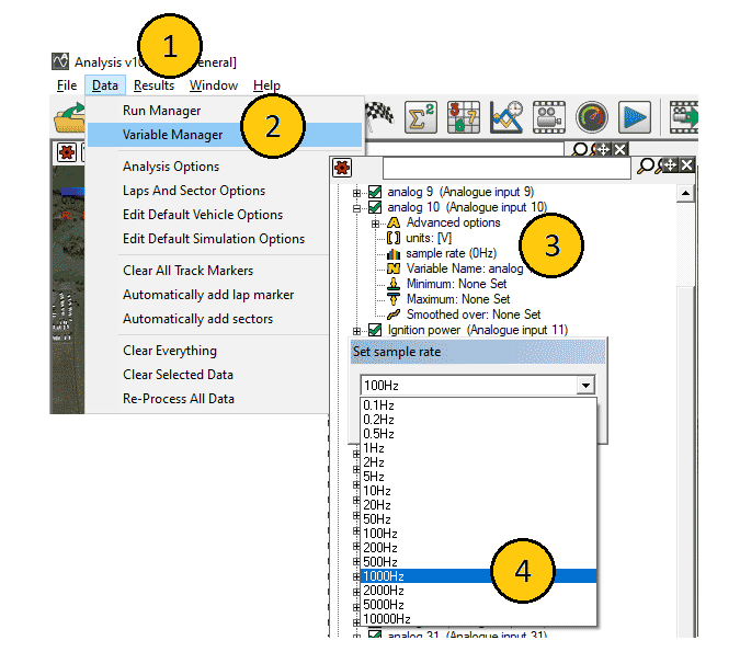 b. Select desired analogue input and set to 1000Hz
