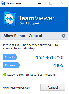 Note that TeamViewer is a 3rd party product and secure. It is not possible to take control of your PC without the ID and password. Once the connection is lost, re-connection is impossible without a new ID and password.