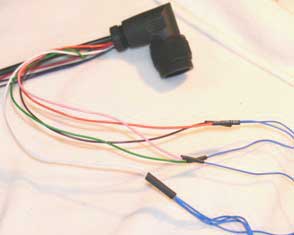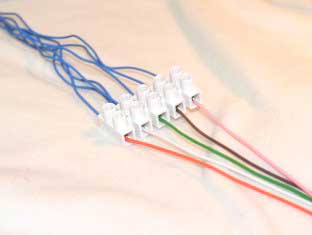 step 4: You should now have one spare wire coming from each button. Take the spare wires and solder, one each, onto the pink, orange, green and brown wires that come from the back of the connector.