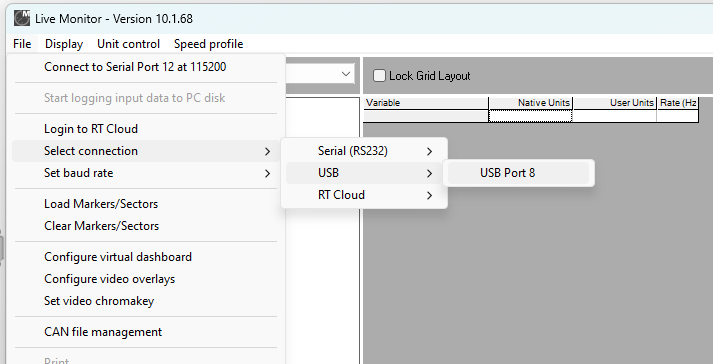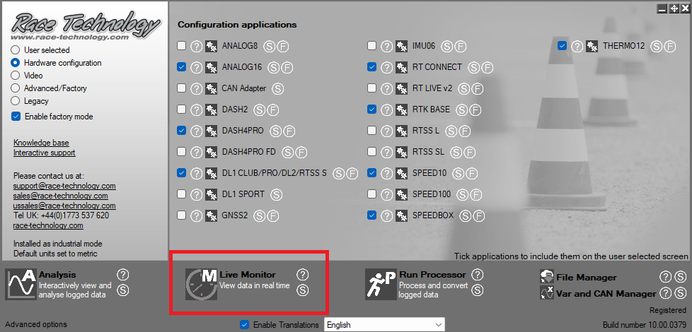 1. Open Race Technology Live monitor program