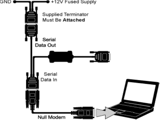 ***IMPORTANT*** Null modem required. A null modem cable is a serial cable with the same connector on both sides which switches pins 3 to 2 and 2 to 3 (transmit to receives). This cable was supplied with the ECU interface.