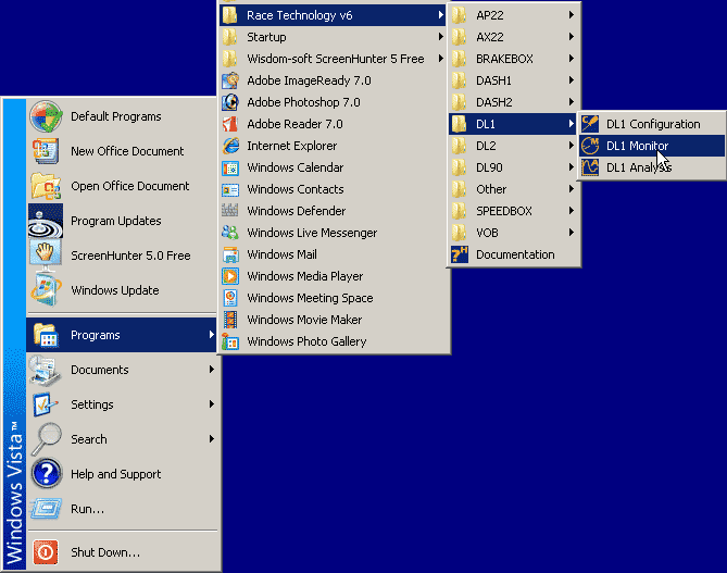 step 3: Now enter the "Start" menu and navigate your way to the DL1 monitor on the RT software.