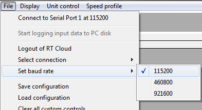 It is worth noting that the baud rate of all RT products when supplied is 115200. This will only alter if specifically set by the user.