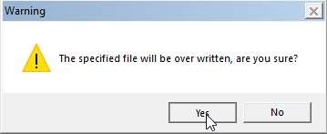 or you can overwrite an existing file by browsing to that file, left clicking on it, clicking on "Save" and clicking "Yes" in the overwrite confirmation pop-up dialog.