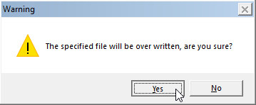 or you can overwrite an existing file by browsing to that file, left clicking on it, clicking on "Save" and clicking "Yes" in the overwrite confirmation pop-up dialog.