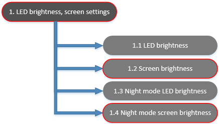 1. Navigate to the menu item "1.2 Screen Brightness" or "1.4 Night mode screen brightness" and press SET.