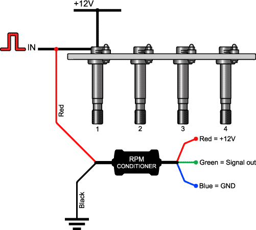 The RPM conditioner is an adapter box to convert a “high level” RPM source, typically from an ignition coil, to a low level conditioned logic level output which can be connected to any of our data loggers and dashboard products.