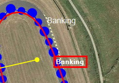 To add a feature to the track right click on the track to open it's context menu and click on the "Add corner here" menu item. (You can click on a large point, small point, or on the red line).