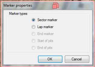 4. The marker properties window will be little bit different depending on the state of the "Open circuit" and "Define pit line" options: