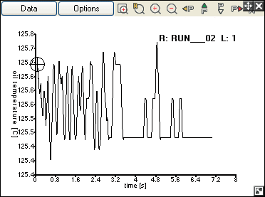 step 7: Open up an xy graph and press the "Data options" button in the top, left hand corner of the window. This will open another window. Use the drop down menu that is under the heading "Variable Name" to select the variable that you wish to show on the graph.