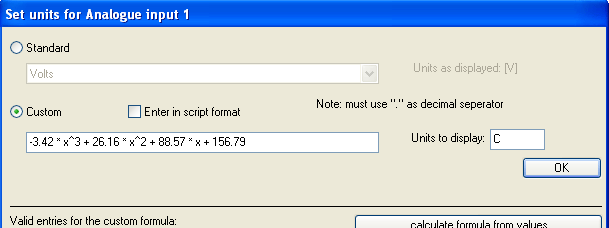 step 4: Make sure that you have made a note of the formula that has been created for the sensor in the DASH2 configuration software (See the section on connecting your own sensor to the DASH2 for information on how to do this).