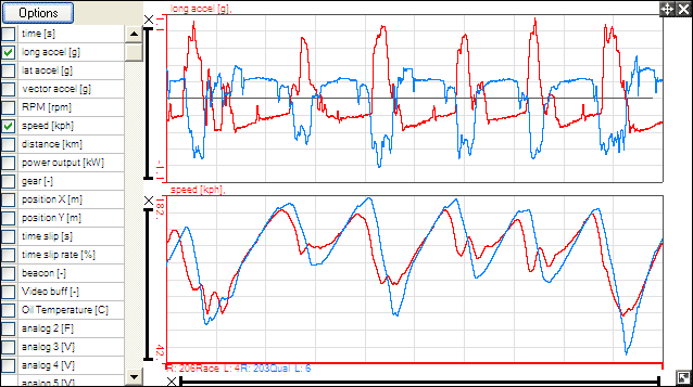 (See section on "How do I see where I was gaining/losing time on a lap" for details on comparing data)