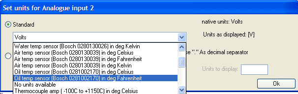 step 5: This will open up a window. By pressing on the downwards pointing arrow to the left of the words "units as displayed", you will open up a drop down menu. You may now select the sensor that you wish to apply. When you have done so, press "OK".