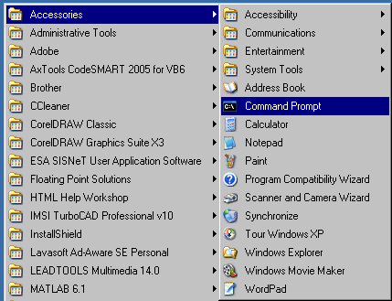 Step #4. With the DLL now in the correct directory, the next step is to open a command prompt window. This is down by going to the windows start menu -> accessories ->Command Prompt.