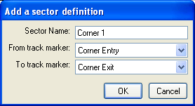 Fill in the Sector Name field to what you want to call the sector, and then choose which track markers you want the sector to be between. Click OK to finalise your decision, then repeat until you've labelled all your sectors.