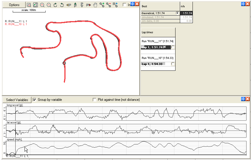 This sounds complicated, but in practice it means that the “start of run” marker can be added to the software in the region close to the point where the vehicle pulled away and the software will sort out the exact point. It also means that it is not required to spend time carefully lining up all the runs before a comparison can be done. To clarify lets look at an example: