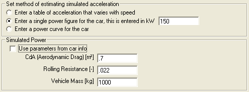 - They are not stored with the car options, although it is possible to base the simulation on parameters set in the car options
