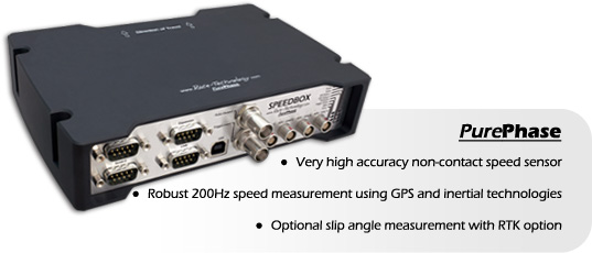 The SPEEDBOX uses Race Technology's very own high accuracy 20Hz PurePhase GPS solution. It is optimized for speed measurement and outperforms even top of the range 'survey-grade' GPS receivers in this area. This unique GPS technology offers lower noise, lower latency and superior bandwidth to "GPS-only sensors". It is also far more resistant to drop outs. This means that it offers an ideal replacement/upgrade for “fifth wheel”, optical and GPS-only sensors in a wide variety of automotive testing applications. These applications include brake testing, chassis dynamics, accident reconstruction, tyre testing and stability management testing, to name but a few.
