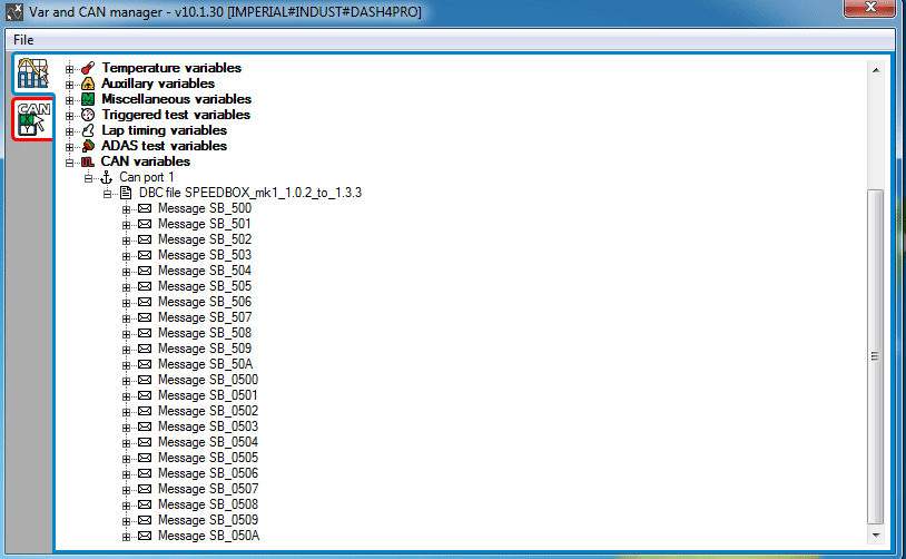Note that the Race Technology software has no facility to create or edit the DBC file, only load and use it. In many applications the DBC file will be supplied to the end user from the equipment supplier, alternatively there is a free toolset that can be used to generate and edit the files "CANdb editor", Race Technology Ltd do not supply or support this software, but it is freely available from the internet.