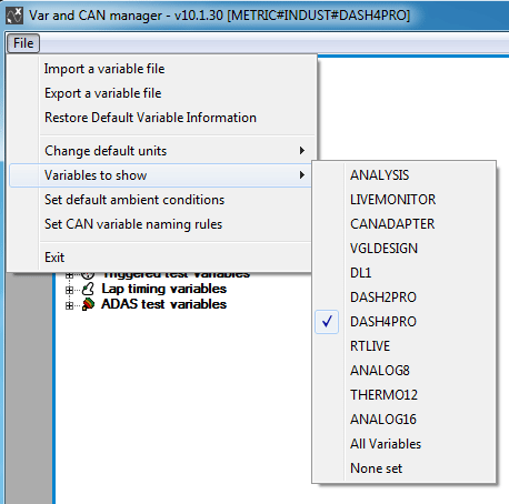 - Selecting File -> Variables to show -> None set will reset the variable tree to its default state.