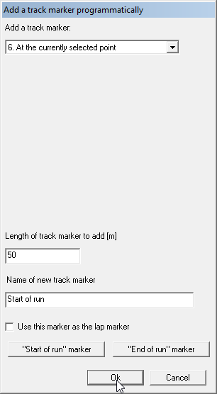 3. With the approximate point that the vehicle started from selected, then go to “add a track marker programmatically” which is on the track map window