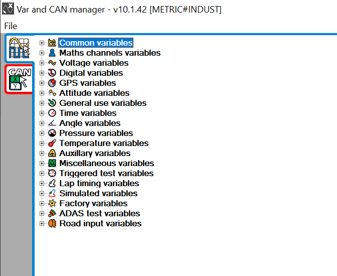 - Click on the "File -> CAN file management" menu item to open the "Var and CAN manager" application.