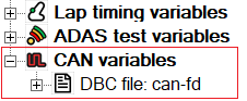 2. If there are DBC files in the DBC storage area, they will be copied to the PC. Copied files will be listed under the CAN node of the variable tree of DASH4PRO FD.