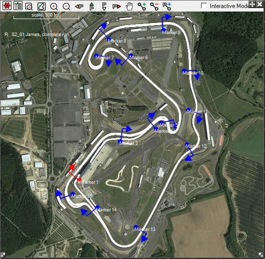 4. Once you select a variation, marker and sector information will be loaded from track map database and will be displayed on the "Analysis track map window". Note that the track map window only takes marker and sector information from the map database. It uses RUN file data to draw the track map.